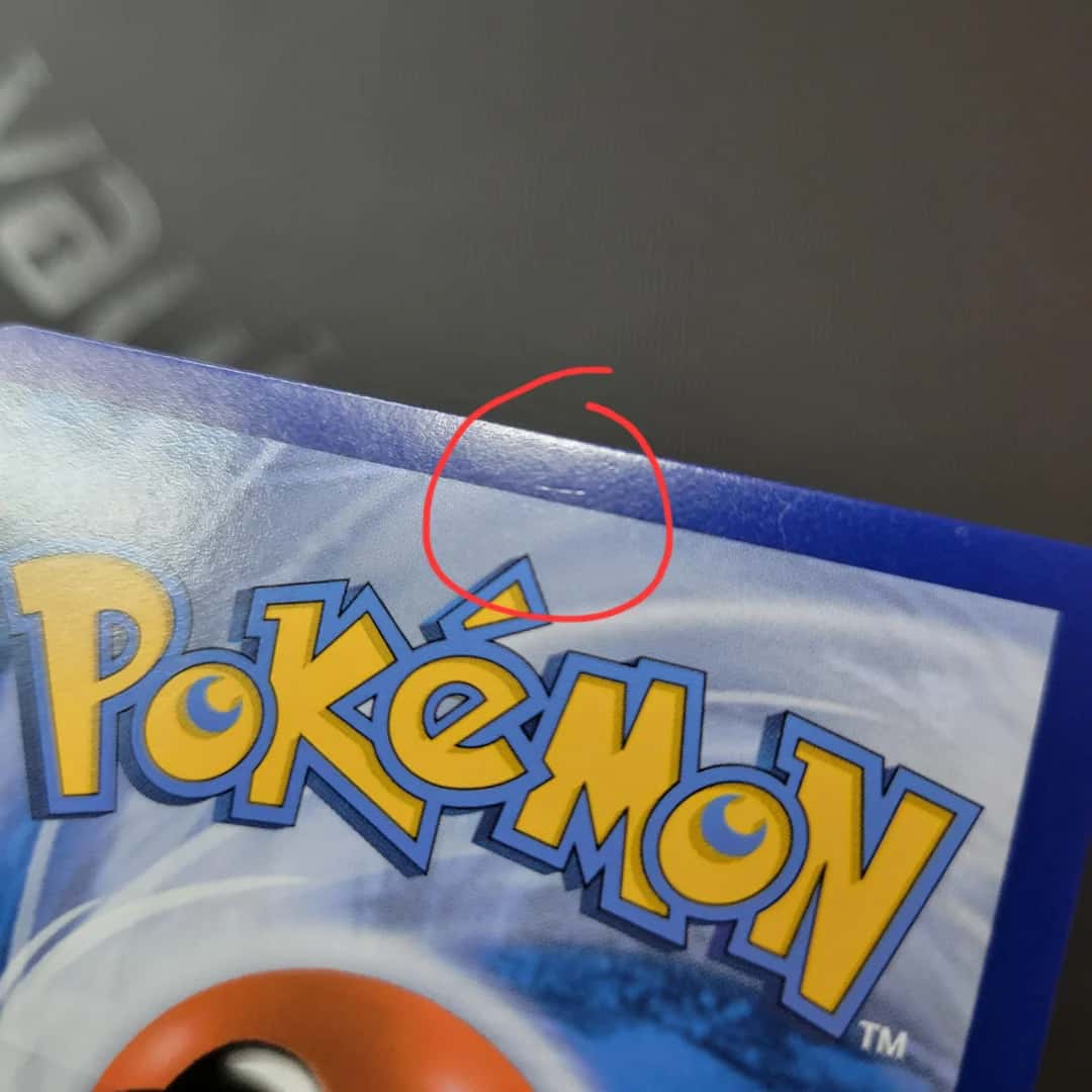- What to look for: You might see a few very minor white spots on the back edges or corners. Under a bright light, you might find a very light surface scratch on the holographic area. This card is your trusty starter Pokémon that’s been with you on your journey. It’s been carefully placed in a binder and looked at lovingly, but it hasn’t been recklessly shuffled for a playground battle.
